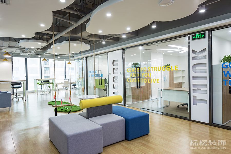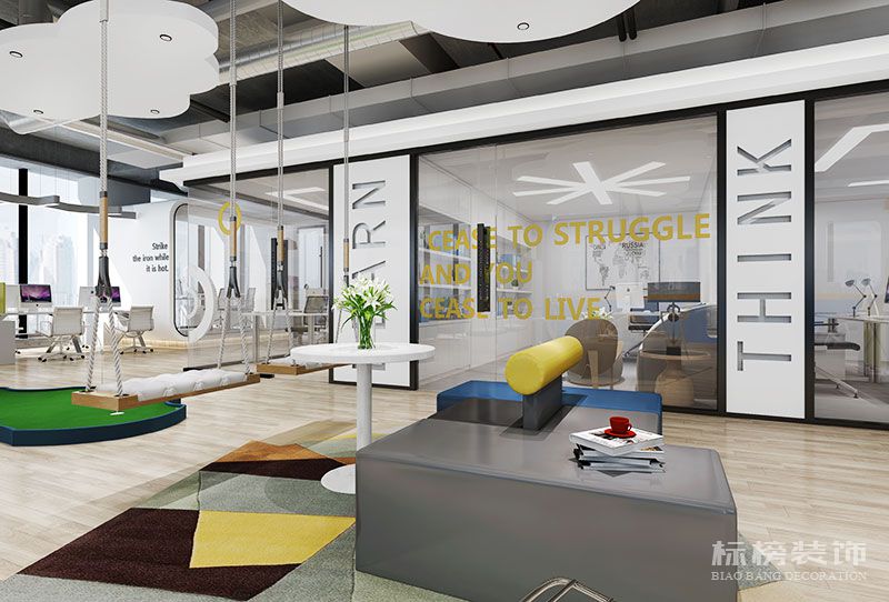 開放的設計思路及風格,為企業(yè)形象增光添彩,給員工關(guān)懷減壓。歡快的色彩,多元化的造型,以及硬裝及軟裝的搭配設計,更易于工作者調(diào)節(jié)心情與開拓思路,間接的提升了工作效率及質(zhì)量。