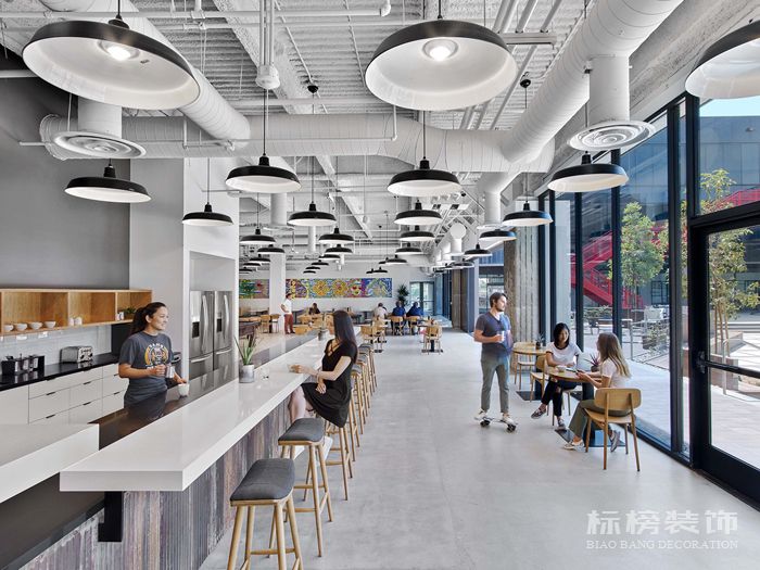 混凝土地板允許員工從辦公桌滑到會議室,為了進(jìn)一步加強(qiáng)社區(qū)意識,各層樓庭院的公共流通環(huán)境更加配置了會議空間,展臺座位,讓員工有了不同的視角。這種配置允許員工或訪客在整個建筑物內(nèi)移動,而不會通過某人的工作環(huán)境拖拽分心和噪音。一旦進(jìn)入團(tuán)隊(duì)工作環(huán)境,員工就可以獲得足夠的空間來布置新產(chǎn)品。
